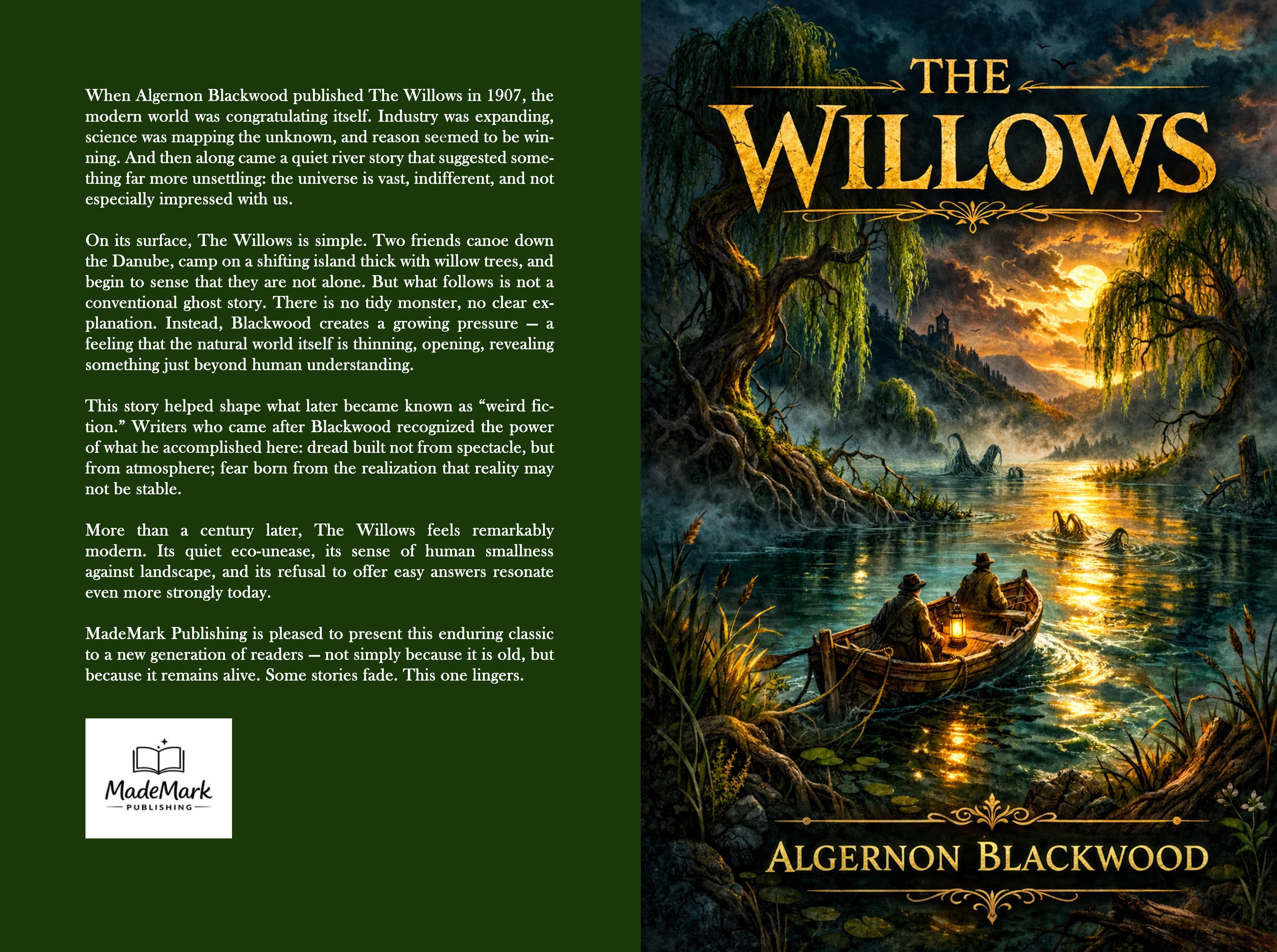 Algernon Blackwood’s 1907 novella The Willows has always had its champions — H.P. Lovecraft famously called it the finest supernatural tale in English — but it remains far less widely read than it deserves. Two men on a canoe trip down the Danube find themselves stranded on a remote island in the river, surrounded by willows that seem to breathe, to move, to watch. Nothing attacks them. Nothing announces itself. And yet the dread is total.